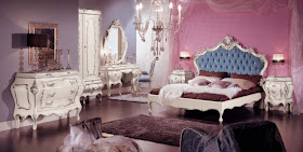 ห้องนอนหรูหราเฟอร์นิเจอร์สีฟ้าครามและสีเงิน.