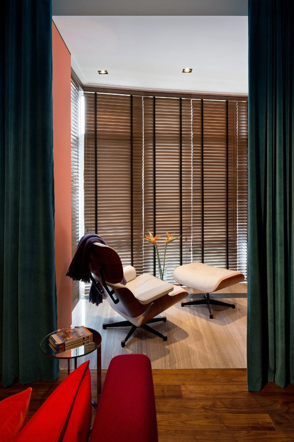 การตกแต่งภายในอพาร์ทเมนท์ที่ทำให้การใช้สีสดใส เพื่อสร้างความคมชัดและเพิ่มคาแลตเตอร์
