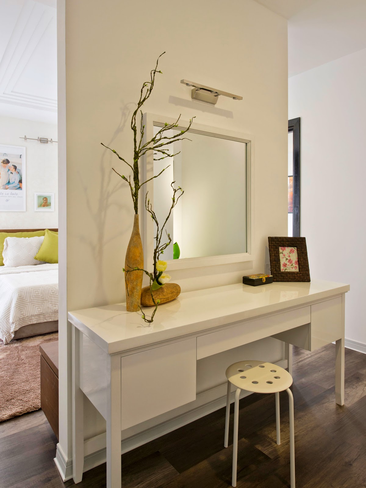 วัสดุเฟอร์นิเจอร์พื้นไม้, ผ้าม่าน, โคมไฟตกแต่งอื่น ๆ ที่มีโทนสี (สีขาว, สีเทา, ครีม, ไม้) สร้างพื้นที่ที่ทันสมัยวินเทจเล็กน้อย ผสมศิลปะการตกแต่งสีส้มและวัสดุที่ใช้ในบางจุดเพื่อให้ความหรูหราและพื้นที่ที่สะดวกสบาย.