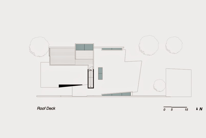 แบบบ้าน 3 ชั้นโมเดิร์นร่วมสมัย โครงการ โดย Terry & Terry Architecture บ้านตั้งอยู่ใน San Fransisco, California จอดรถอยู่ด้านหน้าบ้านและบันได ทางเข้าด้านใต้ของบันไดจึงเป็นประตูขนาดเล็ก สำหรับการขึ้นชั้น 2 และชั้น 3 ผนังครอบคลุมโดยไม้และปูน หน้าต่างกระจกขนาดใหญ่ โดยวิธีนี้เพื่อสถาปนิกเจ้าของสามารถมองภายนอกได้อย่างอิสระ บริเวณหน้าบ้านการออกแบบที่จะทำให้บ้านดูร่มรื่นของต้นไม้