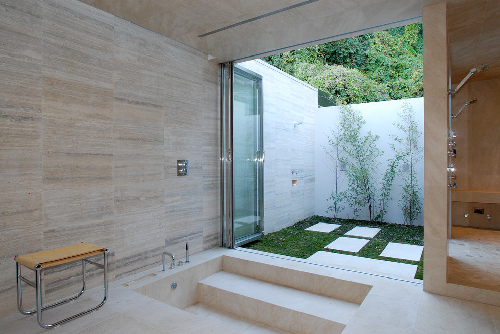 สำหรับผู้ที่ต้องการอาบน้ำส่วนตัวอย่างแท้จริงจงหวงไว้ในผนังคอนกรีตสูง ด้วยเส้นขอบฝังอยู่ในแท่นและผนังที่ยื่น